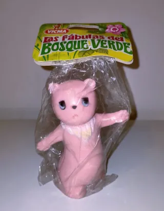 Figura de goma de Juanita, de VICMA, de la serie de dibujos Las Fábulas del Bosque Verde de los años 70/80. Está nueva y sin abrir en su bolsita. La pintura de alguna zona está más deteriorada debido al paso del tiempo. - Personaje: Juanita. - Colección: Las Fábulas del Bosque Verde. - Material: Goma. - Marca: VICMA