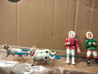 Trío de perros con 2 figuras Esquimales .