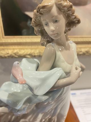 Figura Lladró Porcelana Mujer con Pájaro