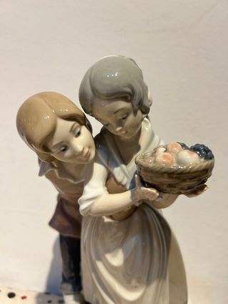 Preciosas figuras de Lladró, dos niñas con flores. Son dos figuras encantadoras, pintadas a mano con delicados detalles. - Representan a dos niñas, una con una maceta y otra con una cesta. - Están en perfecto estado. - Ideales para coleccionistas o amantes de las figuras decorativas.