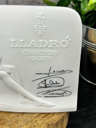 Figura de porcelana Lladro de Don Quijote, edición especial para la Collectors Society. - Diseño detallado de la figura. - Incluye el logo de Lladro Collectors Society. - Firmas grabadas en la base.