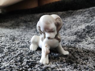 Figurita de porcelana antigua de un cachorro de perro cocker con un caracol en una patita Marca LLADRÓ .
