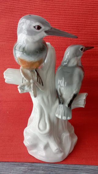 Figura vintage de porcelana de garza, de tipo Lladró. Altura 16 cm