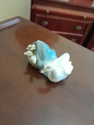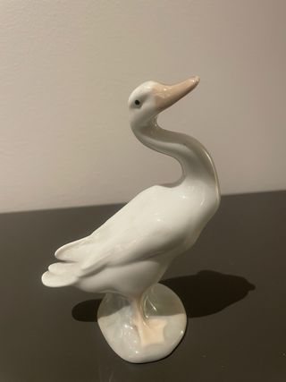 Figura vintage de porcelana de una oca, de la marca Nao Lladró. Longitud 15 cm y altura 11 cm. - Diseño elegante y detallado. - Acabado en porcelana de alta calidad.