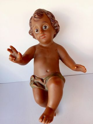 Curiosa y rara imagen de un niño Jesús Negro, Nino Jesús mulato. Irrompible, hecho de PVC de gran calidad con ojos de vidrio. Fabricación Made in Italy Artículo de colección Medida 17 cms Teléfono 649895577 Mirete, Oliver, Puig, Moranduzzo, Pech, Euromarchi, Martino Landi, Ángela Trippi, Lladró, Fontanini, Elio Simonetti, Made in Italy, Florencia, Lucca, Alborox, Belén Napolitano, Palmeras, burro, Ferrandiz, jacuzzi, plato de ducha, pupitre, barriguita, velas, cirio pascual, romano Belén, Poncio Pilatos, Mijas, hojalata, Payá, Geyper, Jiménez Mariscal, Alhambra, Cruzcampo, Giralda, el Cachorro, el Cautivo, Reyes Magos, Herodes, Salcillo