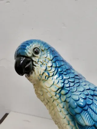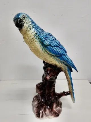 Espectacular Figura decorativa vintage de loro posado en rama, esta pieza vintage está elaborada en cerámica y presenta un vibrante diseño en tonos azules y crema.Dificil de encontrar,será el centro de atención de su hogar por su altura y colores - Detallado diseño de plumas. - Base con textura de tronco de árbol. Buen estado general ,presenta en la punta de la cola pequeño roze inapreciable por lo demás muy bien. Medidas 48 cm de altura. De oración vintage,lladro,Algora,cerámica figura,chic,mid century,pop art,mid century,díselo interiores,interiorista.