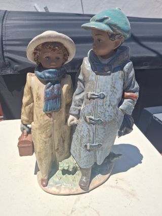 Figura Lladró en gres, titulo; camino del colegio, descatalogada en 2013, escultor Antonio Ramos, medidas 27x19 cm, referencia 2242.