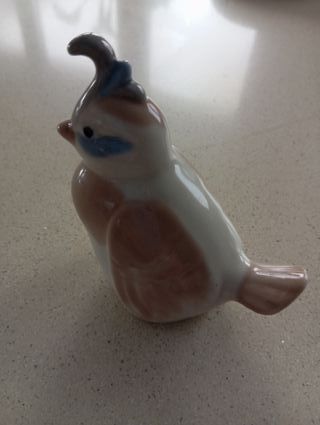 Figura de porcelana vidriada, cacatúa