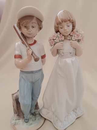 Porcelanas Lladró niño béisbol y niña flores