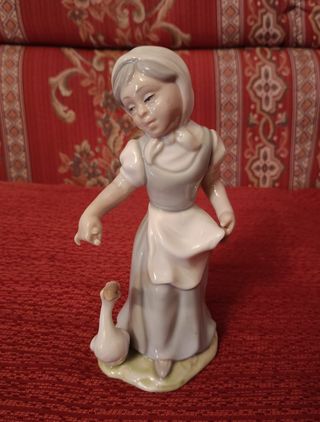 Figura vintage de porcelana marca Tengra, de Valencia, niña con oca (estilo Lladró). Mide 18,5 cm alto x 8 cm ancho. Con sello de autenticidad en la base, artesanía hecha a mano en España. En perfecto estado, impecable, como nueva. #coleccionismo #vintage #figura #escultura