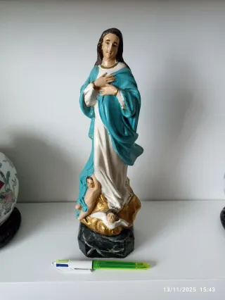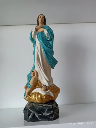 Antigua escultura de la Virgen Inmaculada Concepción, con detalles dorados y figuras de ángeles querubines alados en la base. y sello de Olot ? de gran tamaño 33cm policromado a mano ornamentado con detalles dorados. Antiguo y único con sello joya reliquia para veneración y devoción a María y niño Jesus Natividad misterio Olot ortigas Castells Abellán Cristo crucifijo ángel ángeles santos reliquia exvoto Retablo Art Deco románico bronce latón cobre aluminio cristal reloj despertador lladro cartuja Limoges Art Deco,urge,saldo,Ocasión,oportunidad,rebaja,rebajado,rebajas,ganga,oferta,liquidacion, negociable regalo,