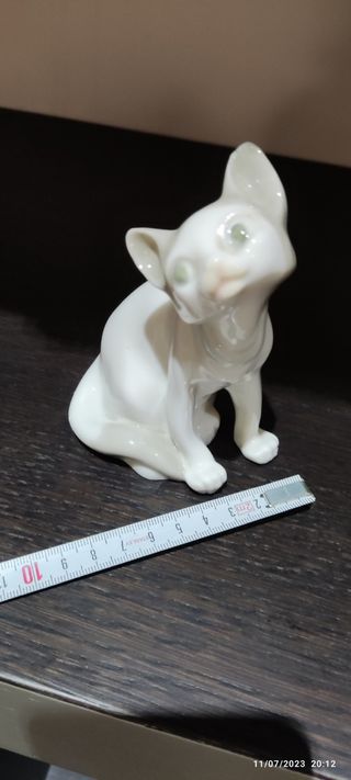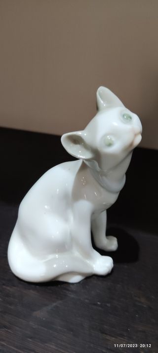 Precioso gato de cerámica de la marca Lladró. Es una pieza delicada y encantadora, ideal para decorar cualquier espacio. - Figura de porcelana. - Color gris y blanco. - En perfecto estado.