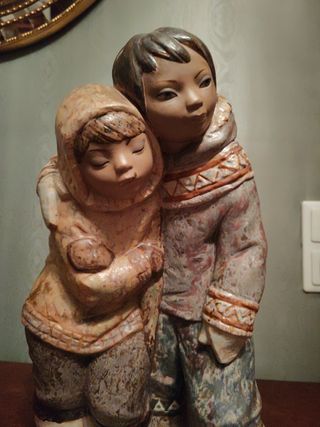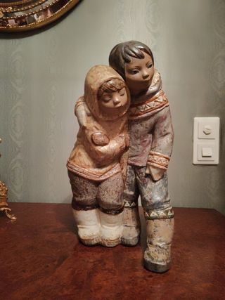 Figura de porcelana de Lladró que representa a un esquimal. - Diseño detallado y expresivo. - Acabado en tonos tierra cálidos.