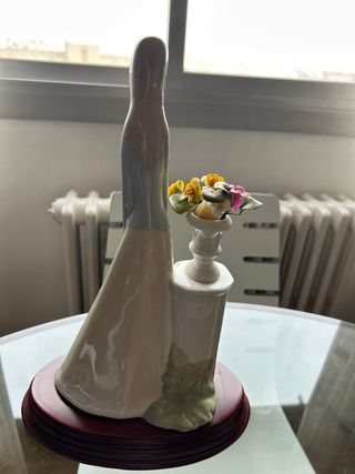 Figura de porcelana de una joven con un velo y un ramo de flores. Altura de 22 cm. - Diseño delicado. - Tonos pastel. Por detrás tiene una pequeña fisura superficial, de ahí el precio. Foto hecha en modo macro. Parece más de lo que es. NO envío. Entrega en mano y pago en efectivo en Zaragoza.
