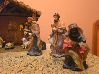 Pesebre de navidad con 11 figuras de resina grandes de 20 cm. En su caja original y en perfecto estado. Medidas del Pesebre 60 x 25 x 37