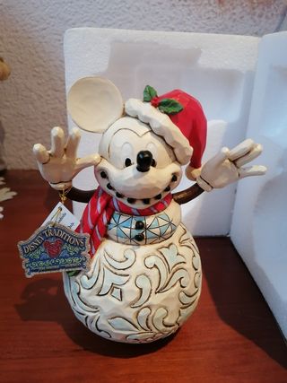 Figura decorativa de Mickey Mouse como muñeco de nieve. Fabricada en resina, y pintada a mano. Ideal para los amantes de Disney, ya sea para adornar cualquier estantería de casa o como complemento en la decoración de navidad de casa. Viene con el embalaje original, la caja solo se ha abierto para hacerle la foto. Pide más detalles o información sin problema ☺️ * Se hacen envíos, incluido en el precio* **Se hacen ofertas por pack al comprar varias cosas del perfil**