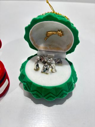 Conjunto de belén en miniatura con figuras plateadas. Incluye un pesebre y un cometa. - Figuras de belén plateadas. - Cometa dorado. - Caja de presentación estilo Santa Claus. - Caja de presentación estilo árbol de Navidad. 6X7,5 MAS COSAS EN MI PERFIL