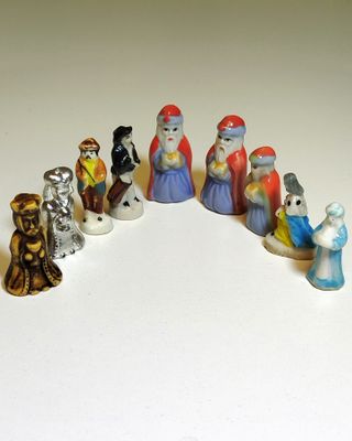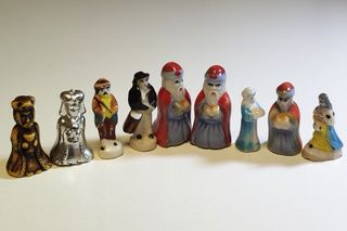Conjunto de 9 figuras antiguas de cerámica de la rosca de reyes o Navidad, ideales para Belén en miniatura, roscón o decoración navideña. Las vendo todas juntas por 18€ o separadas en lotes, pedir por chat