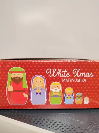 Conjunto de muñecas rusas de madera con temática de Belén. - Diseño White Xmas de La Lluna. - Incluye varias figuras de nesting dolls. - Decoración festiva para Navidad.