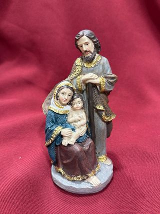 Conjunto de figuras para un belén de Navidad, representando la Sagrada Familia. Incluye a San José, la Virgen María y el Niño Jesús en su cuna. 14 cm - Figuras detalladas. - Diseño tradicional.