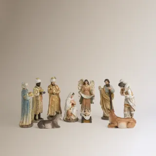 Conjunto de figuras para Belén de Navidad. - Incluye varias figuras de personajes y animales. - Representación de la escena del nacimiento.