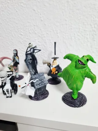 Set de figuras de la película Pesadilla antes de Navidad. - Incluye a Jack Skellington, Sally, Oogie Boogie, Zero, y los niños Lock, Shock y Barrel. - Personajes icónicos de la película. - Ideal para coleccionistas y fans. Sólo habría q pegar la sustentación de Sally, por lo demás están impecables .