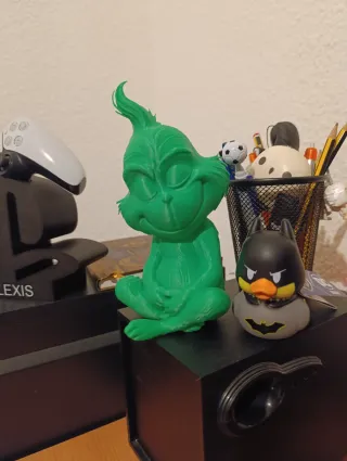 Figura decorativa del Grinch en posición de meditación, con un diseño tierno y sonriente. - Color verde. - Material: Plástico.