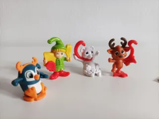 Lote de 4 figuras desmontables para colgar, de las sorpresas de los huevos Kinder. - Incluye un pingüino, un elfo, un oso polar y un reno. - Figuras de plástico para coleccionar. Muy buen estado Preguntar por descuentos por lotes