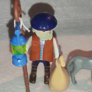 Figura de Playmobil representando a Olentzero, el personaje tradicional vasco de Navidad - Incluye figura de Olentzero con vestimenta típica. - Acompañado del burro Napo. - Se incluye un saco. - en el bastón porta un farol, que no es original de Playmobil, pero todo lo demás sí