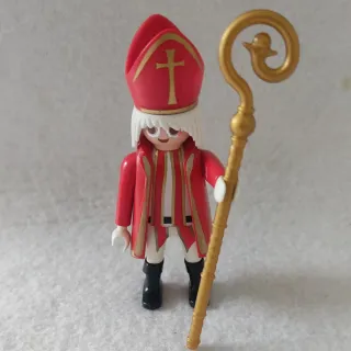 Figura de Playmobil representando a San Nicolás, con su tradicional atuendo de obispo y báculo. Similar a Papá Noel en Navidad - Báculo dorado con diseño curvo. - Mitra roja con detalles dorados y cruz. - Túnica roja con detalles dorados y fajín.