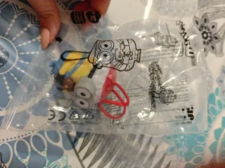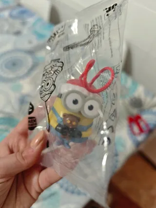 Figura de Minion con temática navideña, ideal para coleccionar o decorar. SE VRNDE O SE CAMBIA POR OTRO DE LA COLECCIÓN - Minion con gorro de Papá Noel. - Sostiene un osito de peluche. - Incluye cordón para colgar.