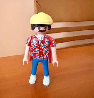 Figura de Playmobil inspirada en la serie de televisión Magnum. - Camisa roja con estampado floral. - Pantalones azules. - Gorra amarilla. - Bigote característico. * si deseas agrupar con otras figuras no dudes en comunicarlo y te hacemos anuncio. CLICKEANDO SERIE ROSA Saxo Música Callejero Bombín Navidad Reyes magos Belen 1900 Caballero Baston Paraguas Boina Chistera Bombín Navidad Pipa Halloween Magic Hansel y Gretel Cuento Poción Victoriano Victoriana Dama señor caballero abuela abuelo