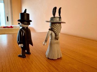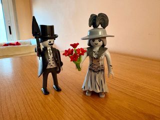 Set de Playmobil que representa una pareja victoriana enamorada fantasma, figura de piedra . Ideal para coleccionistas. - Figura masculina con sombrero de copa y paraguas. - Figura femenina con sombrero y ramo de flores rojas. victoriano caballero dama victoriana serie 25 Halloween Animales Granja Belen Campo Portal Reyes magos Navidad Los trastos de Marina Serie sorpresa sobres City Mar Medieval Alemania Victoriano Francia Everdreamerz Special Scooby doo serie 1 serie 2 Halloween Magic Monstruo Zoo África Africano