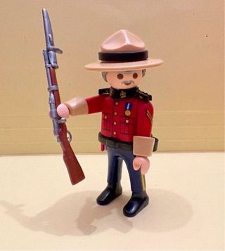 Figura de Playmobil de la Policía Montada de Canadá. Incluye un rifle. - Uniforme rojo característico. - Sombrero beige. - Detalle de medalla en el pecho. ( si deseas envío escribe por el chat y te hago anuncio , se puede hacer lote para un solo envío de todo ) CLICKEANDO Caballero dama bastón paraguas bolso Londres Inglaterra Guardia Real Ejército SERIE ROSA Navidad Reyes magos Belen 1900 Caballero Baston Paraguas Boina Chistera Bombín Navidad Pipa