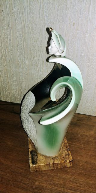 En perfecto estado y con sus etiquetas de certificación Figura joya de porcelana con oro y platino de la firma Galos . 28 cm de altura , Serie de los años 90 - Material: Porcelana y oro. - Diseño: Abstracto y estilizado. - Base: Incluye base de mármol.