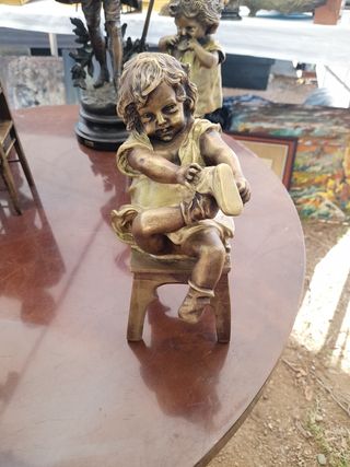 bonita figura de bronce representando a niño con perritos firma del esculto por favor gente seria gracias nota no leer figura bronce oro plata escultura bargueño mesa silla espejo virgen santo madera talla religiosa cuadro óleo