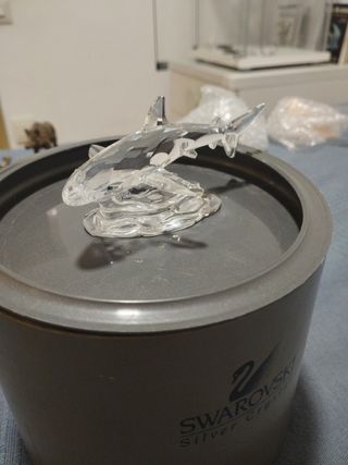 Preciosa figura de tiburón de cristal de Swarovski. Se encuentra en perfecto estado, en su caja original con certificado. - Figura de cristal tallado. - Diseño detallado del tiburón. - Caja y certificado incluidos. Se trata de una reproducción del tiburón de puntas negras (Carcharinus melanopterus) dado a su forma y sus características ORIGINAL Y DESCATALOGADO DE SWAROVSKI No oro plata cobre. Se envía a toda españa Se convinan envios Mira mis otros anuncios No se hacen devoluciones