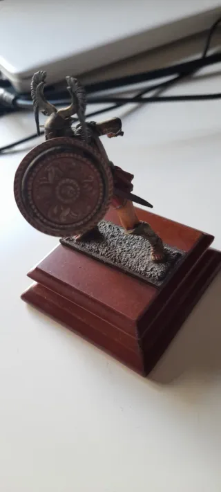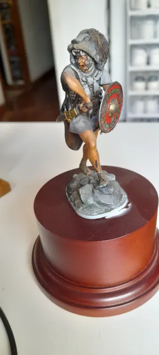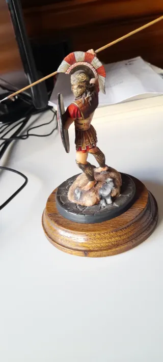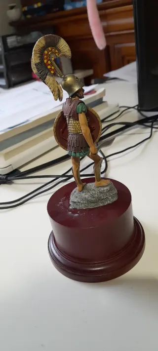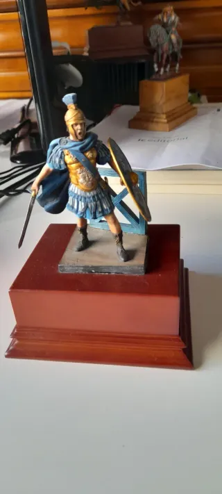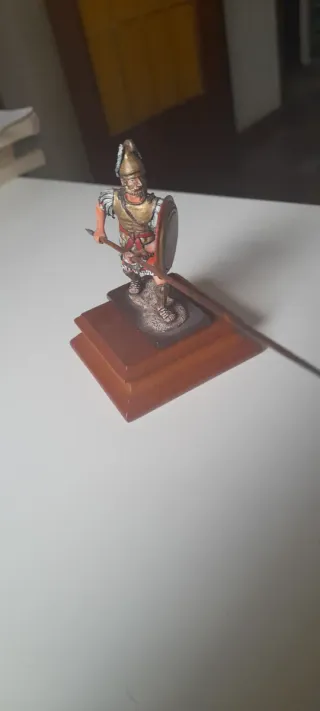 Figura de colección de un soldado etrusco a escala 54mm. - Réplica detallada en plomo. - Base escénica con elementos decorativos.