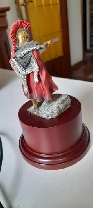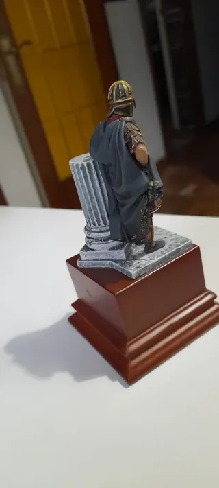 Figura de colección de un oficial romano de oriente a escala 75mm. - Réplica detallada en plomo. - Base con diseño de columna clásica.