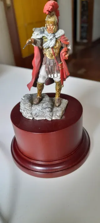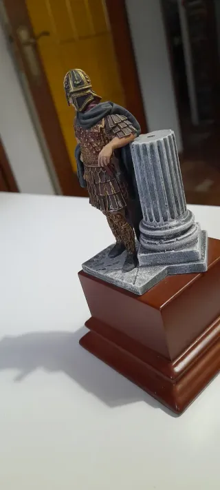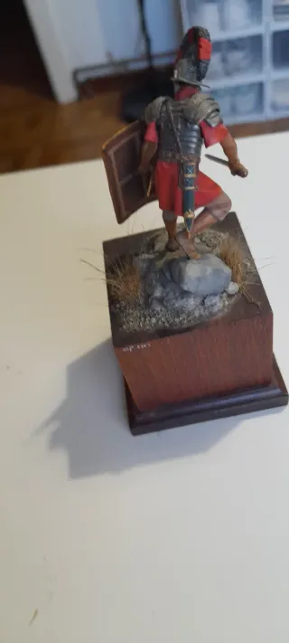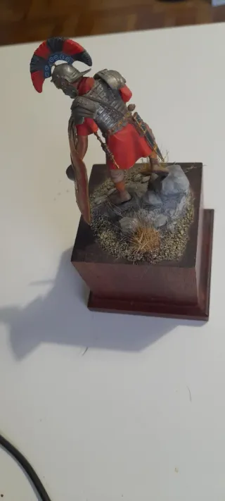 Figura de colección de un oficial romano a escala 75mm. - Réplica detallada de soldado romano. - Base con rocas y peana de madera.