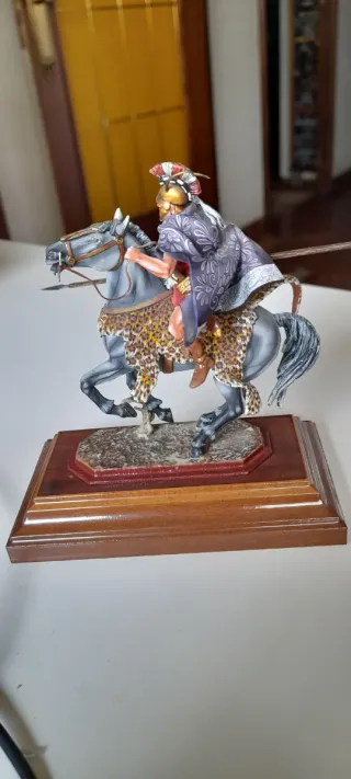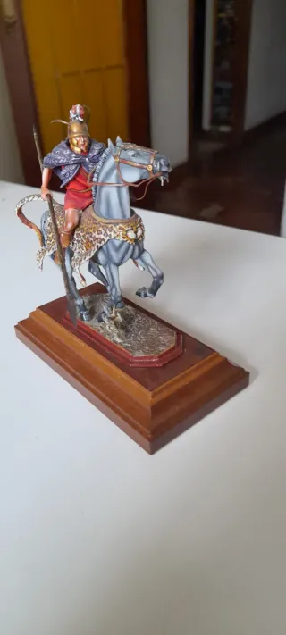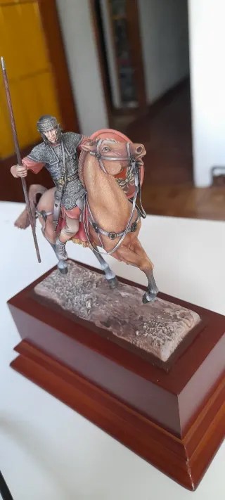 Figura de colección de caballería hispana a escala 54mm. - Réplica detallada de soldado romano a caballo. - Base escénica con textura de terreno. Arsenyev