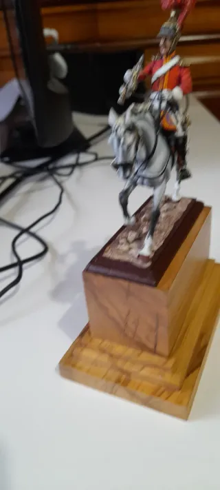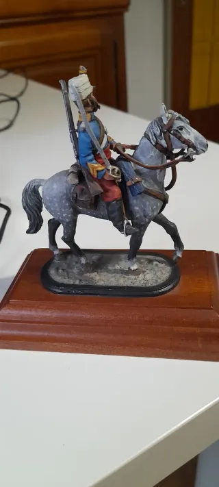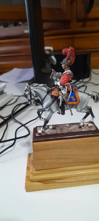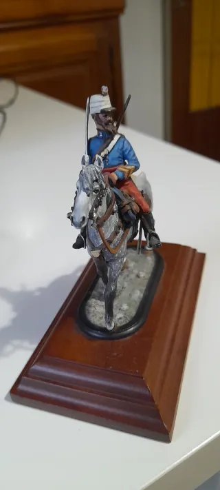 Figura de colección de caballería gala a escala 54mm. - Soldado de plomo detallado. - Montado a caballo. - Base de madera incluida. Arsenyev