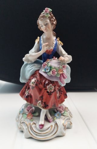 Es una figura procedente de una herencia. Data del año 1930 aproximadamente. Producida en Thüringen, República Democrática de Alemania. Señorita con flores en muy buen estado. En hogar sin mascotas y no-fumadores.