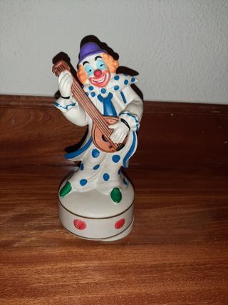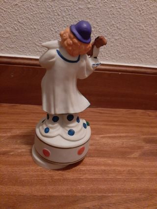 Figura musical. Porcelana, cerámica. Siempre guardado en armario vitrina. Funciona perfectamente. Funcionamiento: sujetar el payaso con una mano y dar cuerda o enroscar el disco blanco unas 3-5 veces. Dejar en una zona firme, y disfrutar de sus giros y música. En muy buen estado de conservación. ÚLTIMA FOTO para verificar la marca del artículo. No se admiten devoluciones. Preparo lotes y envíos.