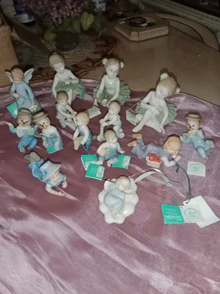 Conjunto de figuras de porcelana de niños y ángeles. - Figuras detalladas de porcelana. - Diseños variados de niños y ángeles. - Incluye etiquetas de la marca Herwit.
