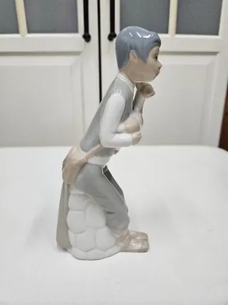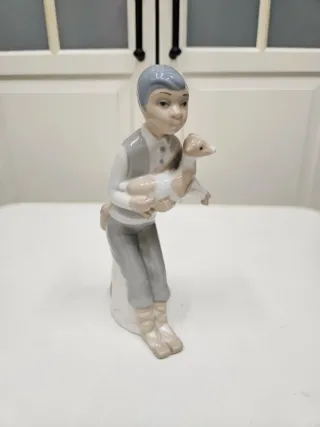 Figura de porcelana de la marca Nao, que representa a un niño con un cordero. Una pieza delicada y detallada. - Material: Porcelana. - Diseño: Niño con cordero. - Marca: Nao.
