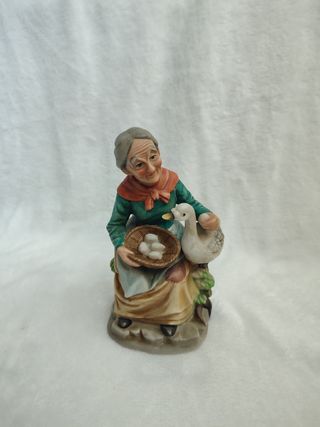 Figura de porcelana de Lladro que representa a una mujer con una cesta y una gallina. Muy apropiado para decoración o para regalar. Hago envíos. Muy hermosa. Altura 24 cm, ancho 12 cm aproximadamente. - Diseño detallado. - Acabado brillante.