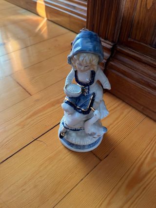 Preciosa figura alta para poner en la entrada y guardar llaves adentro o similar. Pieza de porcelana artesanal