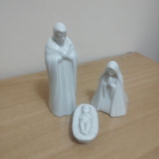 Conjunto de figuras de porcelana blanca para belén. - Figuras de estilo minimalista. fabricado en España por la firma M.Requema. de gran belleza. medidas de San José 11x7x3cm Miren en mi perfil dispongo de mas nacimientos. - Incluye figuras de María, José y el niño Jesús en su cuna.