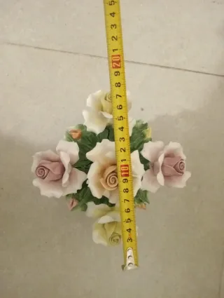 Preciosa figura decorativa de porcelana con un ramo de rosas. - Diseño delicado con flores en tonos beige y rosa. - Ideal para añadir un toque de elegancia a cualquier espacio.